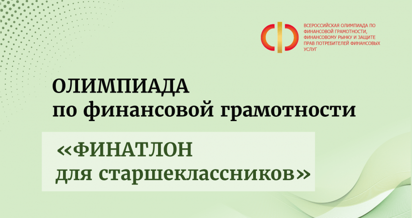 Стартовала XVIII Всероссийская Олимпиада по финансовой грамотности, финансовому рынку и защите прав потребителей финансовых услуг – «Финатлон для стершеклассников» 2022-2023 г. для обучающихся 8-11 классов. Олимпиада включена в перечень олимпиад, победа в которых дает возможность льготного поступления в ВУЗы страны. Регистрация на Олимпиаду проходит на сайте https://www.fin-olimp.ru/ в срок до 20 ноября 2022г.