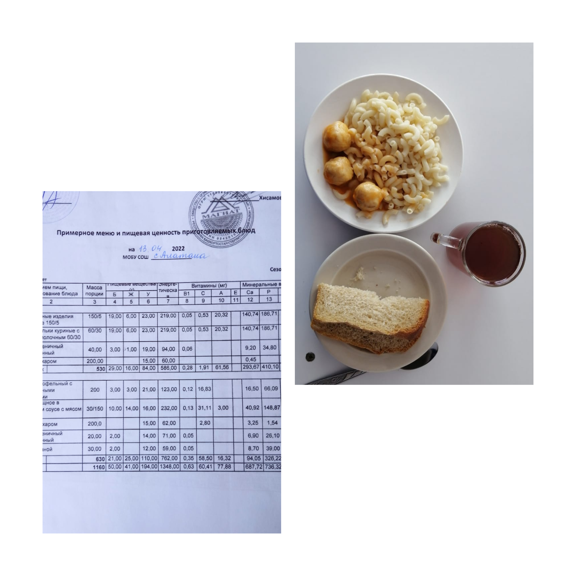(Меню на 13.04.2022 1-4 кл)