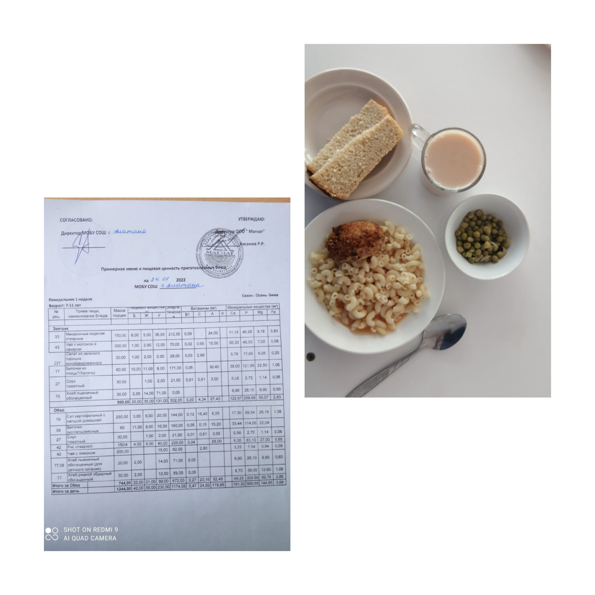 (Меню на 24.01.2022 1-4 класс)