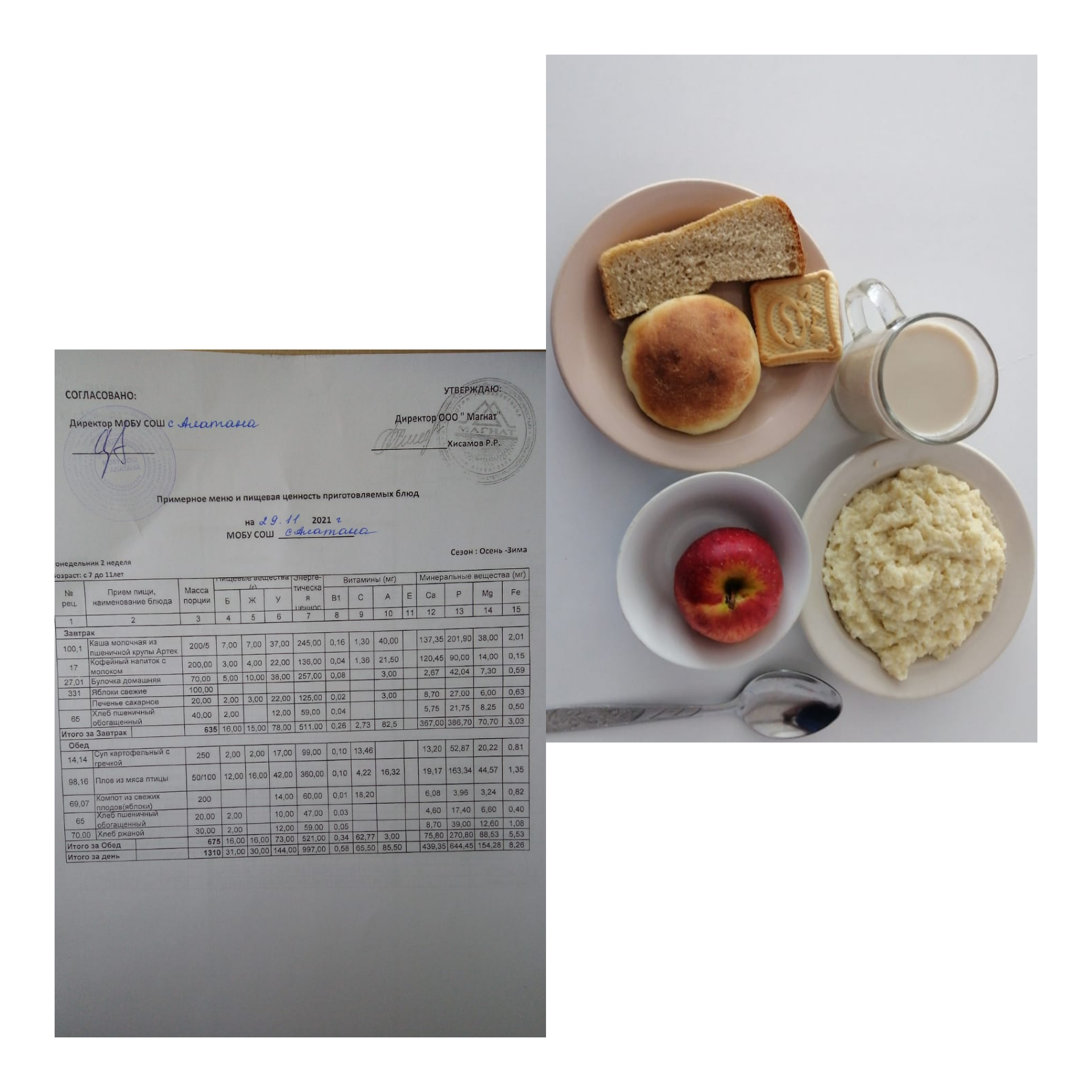 (Меню на 29.11.2021 1-4 кл)