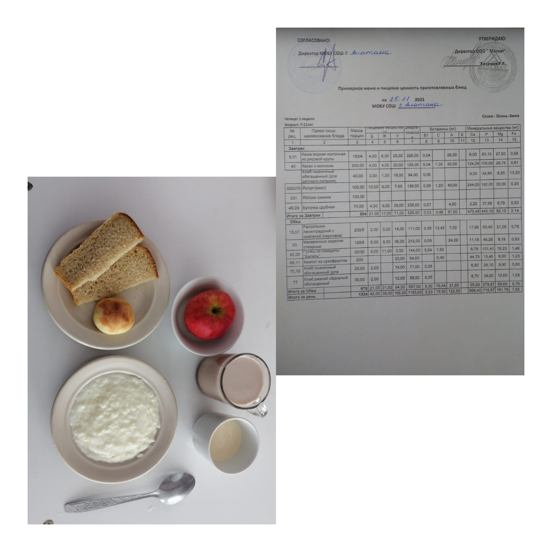 (Меню на 25.11.2021 1-4 кл)