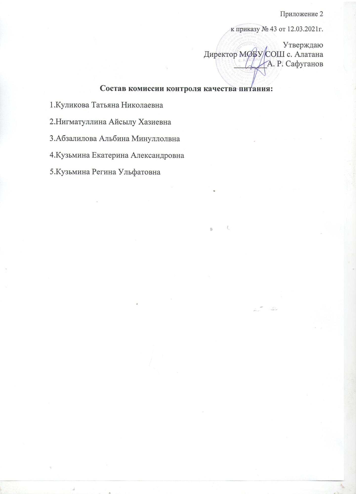 представителей родительского комитета. Состав комиссии утверждается директором
